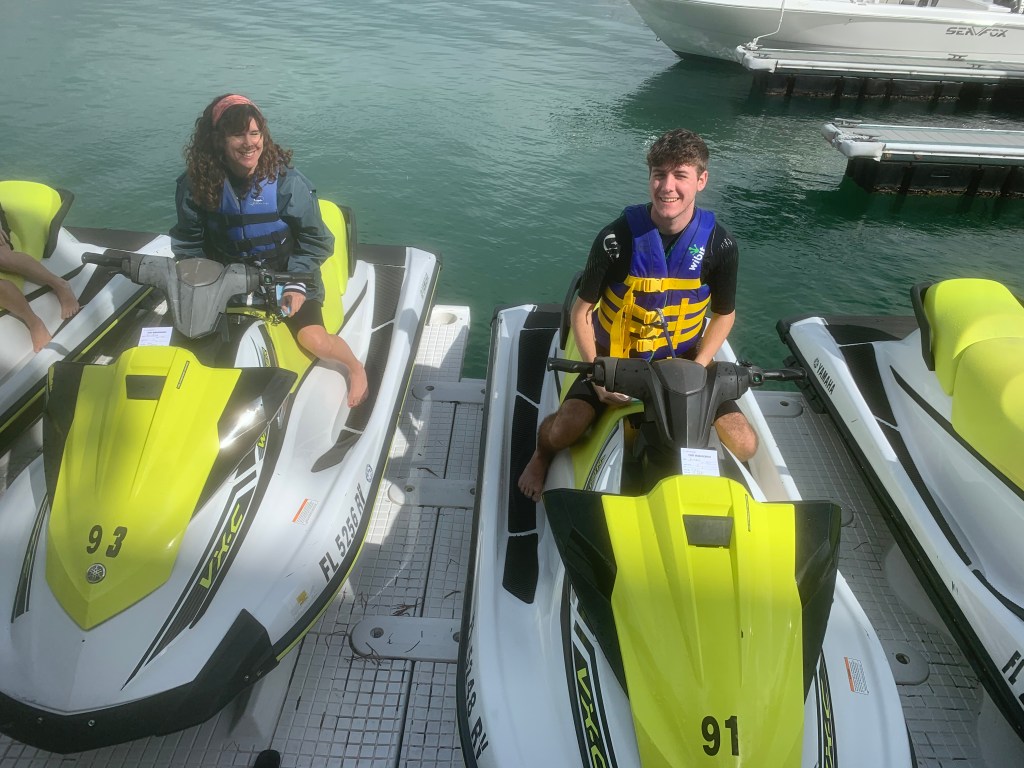 We took a one hour tour with Fury’s Jet Ski Tours . The seas were really unusually rough that day and while we were out on the water there was also a downpour. I cannot explain how a boy who is terrified of tiny deer and pelicans can race way ahead of me at 50 miles an hour in torrential rain with 4 foot waves coming at him while operating a jet ski for the first time….. but there he was! This was HIS favorite activity. Go figure. I learned that no matter how loud you scream that you are going to die while riding a jet ski in 4 foot waves, no one can hear you! Fun fact; If you don’t keep the speed consistent on a jet ski, or if you go too slow, you completely lose control of the steering and the jet ski swerves all over the place and sometimes capsizes.