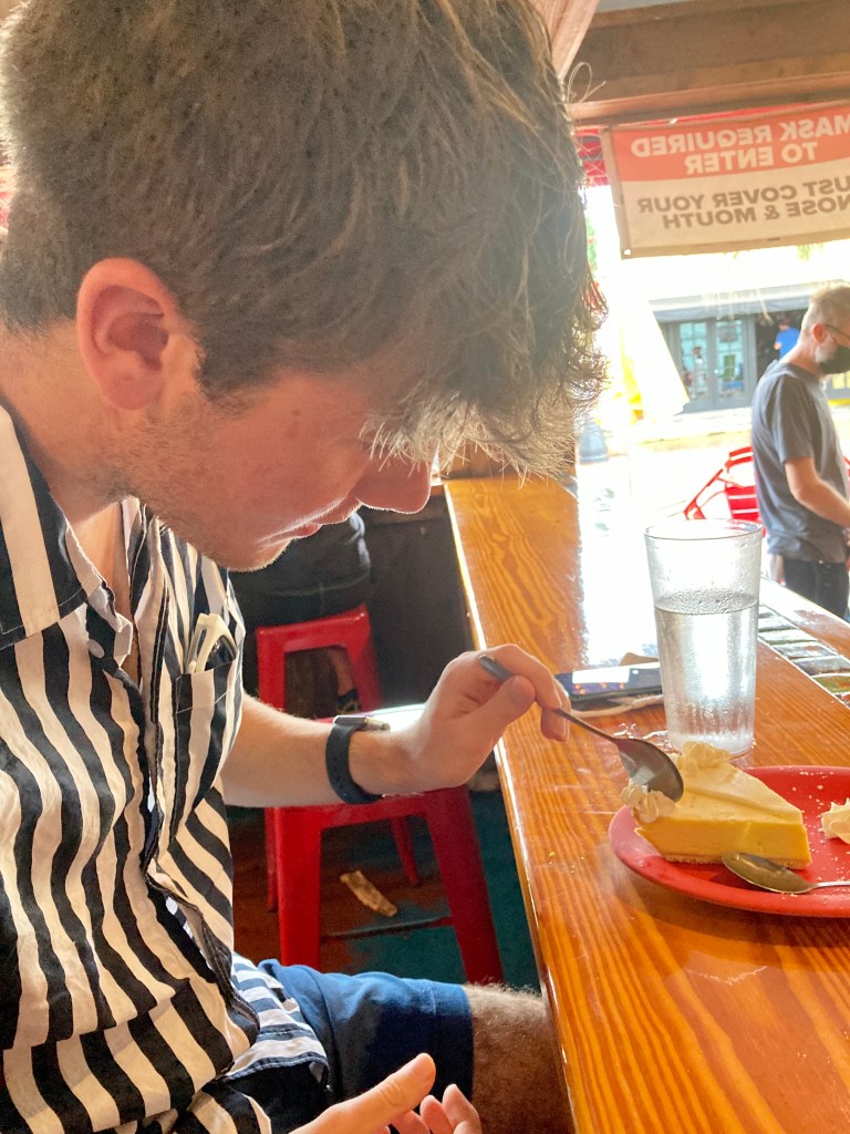 Amigos Tortilla Bar. They offer a pie taste off on their menu between the two “best “ key lime pies in town. My son and I both vote for Kermits. Excellent place for a beer and some reasonably priced Mexican food. We went there for an early dinner before we went out on the sunset cruise.