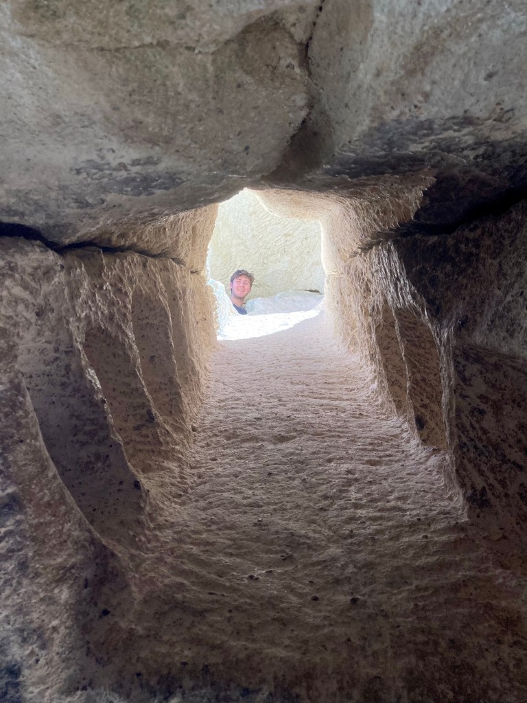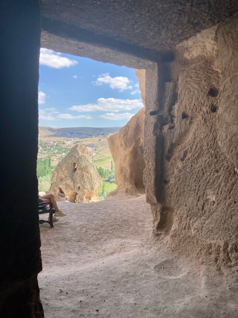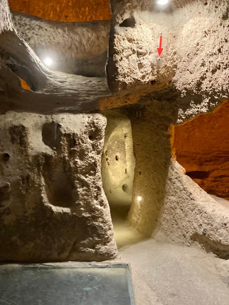 Visit the underground cities – There are several underground cities that you can visit in Cappadocia, though some are not preserved enough to go into. The caves are believed to have been dug out over 2,000 years ago and are thought to have been built to protect people from invaders. They were also used during the 14th century by Christians fleeing the Mongolians and again a few centuries later, for people trying to avoid persecution during the Ottoman Empire. We visited the Kamakli Underground City, which is 8 levels deep!! You can only visit the first 4 levels. As we descended the first two stories, the tunnels became longer, lower and extremely narrow. At one point I just kept repeating that I wasn’t scared. Out loud. Not embarrassing at all. There were stables, storage rooms, kitchens and even a church to see on the way down. The red arrows throughout the cave show you the way out.