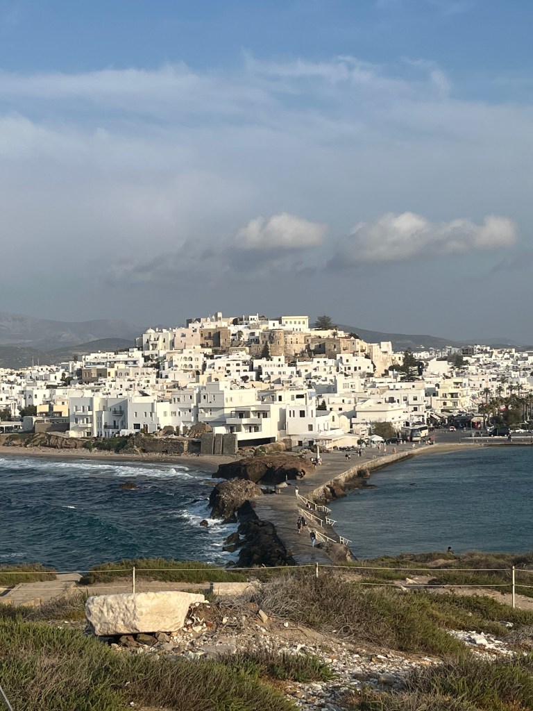 Welcome to Naxos…..now one of my favorite of the Greek Islands. It takes a little over 30 minutes to get here from Mykonos by high speed ferry, but it is a world away! It is greener than other islands in the Cyclades, has much more of a chill vibe and is way cheaper than Mykonos. Hello Naxos…I’d like to stay a while….