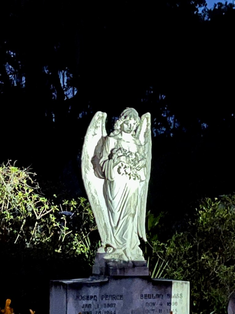 Although we did not encounter any real-live ghosts while visiting Savannah (pardon the oxymoron) , we did have a great time listening to ghost stories, cemetery-trekking , riding in a hearse and checking under the bed for strange men (fancy meeting you here) . If you are interested in a fun city, give Savannah a try…Enjoy a biscuit with gravy for breakfast, wander around the city squares and maybe, just maybe come face to face with a freakishly large Ronald McDonald.