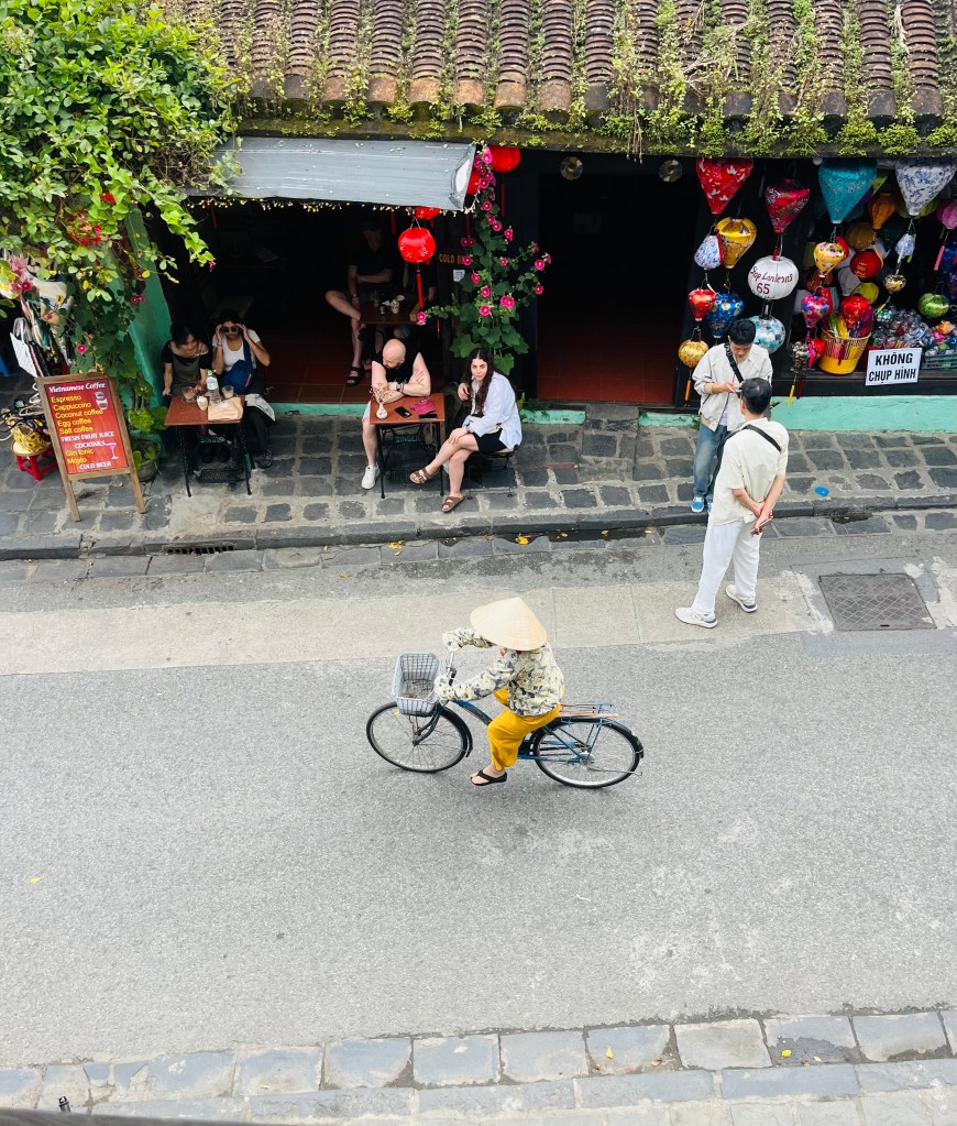 Explore Hoi-An– So this was one of my favorite places in Vietnam. The entire town is a World Unesco -site with original Vietnamese wooden houses and temples to visit. When you first enter the town, there is a booth where you pay the equivelent of a few American dollars to get a ticket that allows access to 5 different sites of your choice on the map they give you, as well as the most amazing variety of shops. Shops that sell silk pillow cases, jewelry, silk scarfs, local art, clothing and so much more…We spent an entire day here. We spent a lot of dongs here too….We visited the Museum of Trade Ceramics, the Tan Ky House ( a traditional Vietnamese House), the Quang Trieu Assembly Hall and the temple attached to the Japanese Bridge. The Japanese Bridge was amazingly cool…. built in the late 1500s to unite different communities that developed in Hoi an to trade at the time.